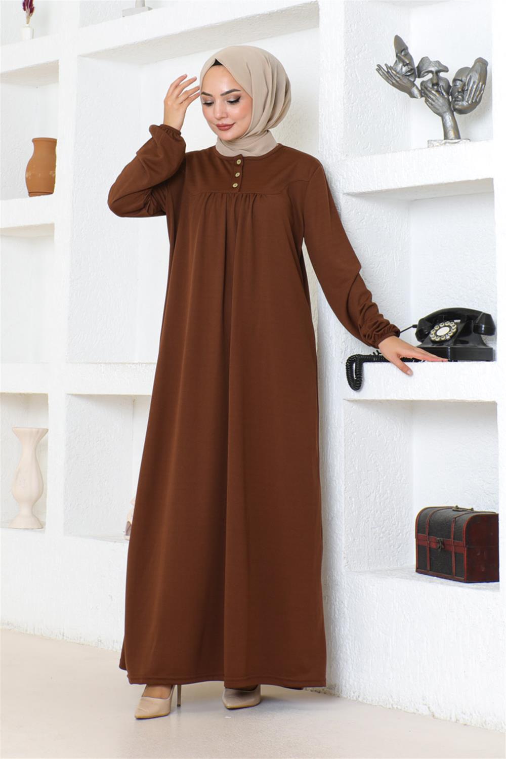 Robalı Tesettür Spor Elbise KAHVERENGİ