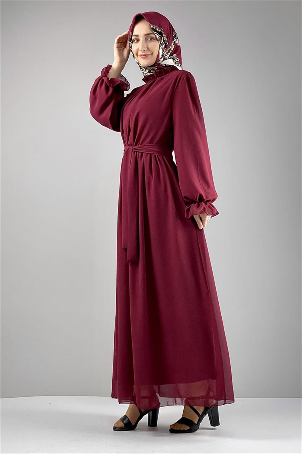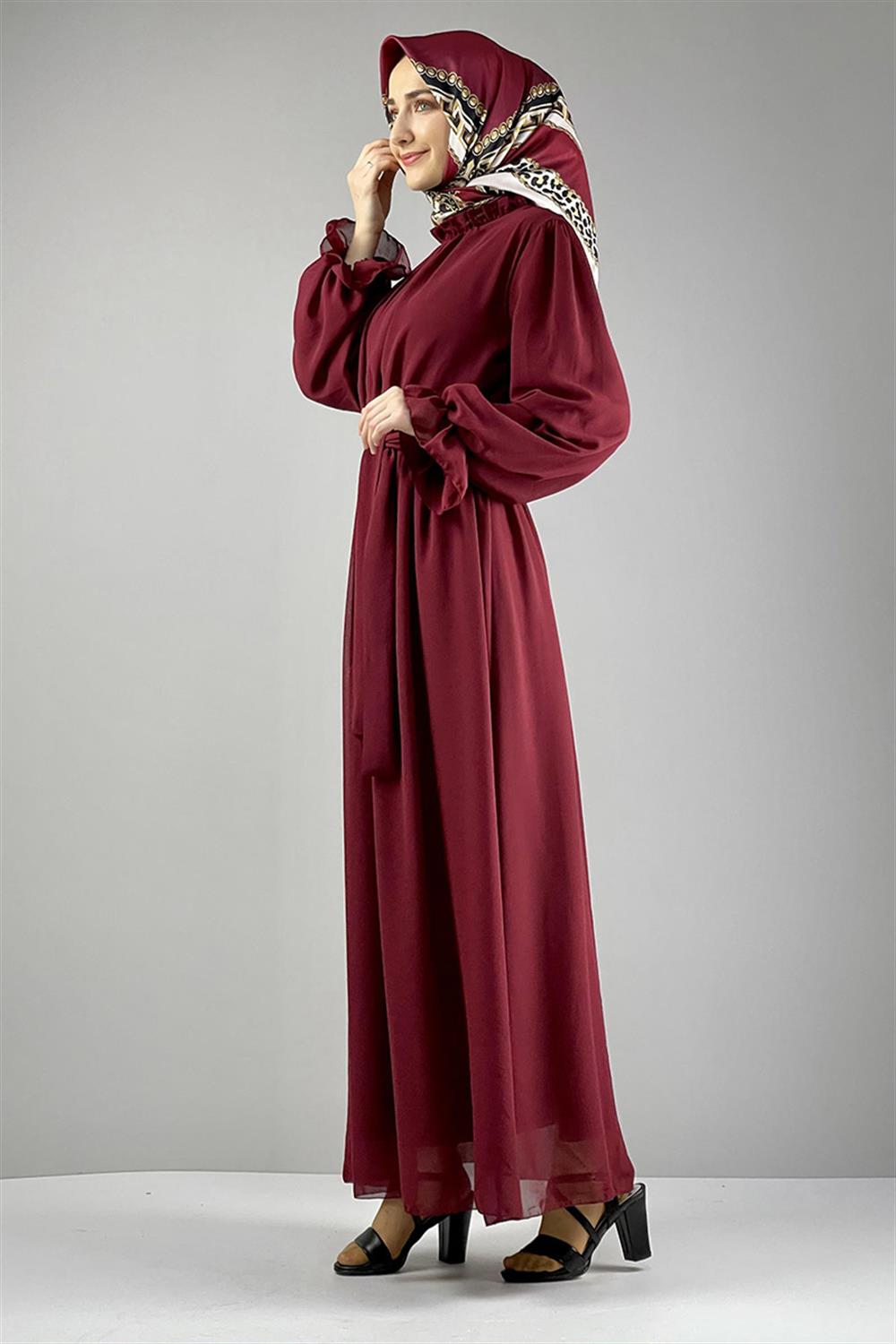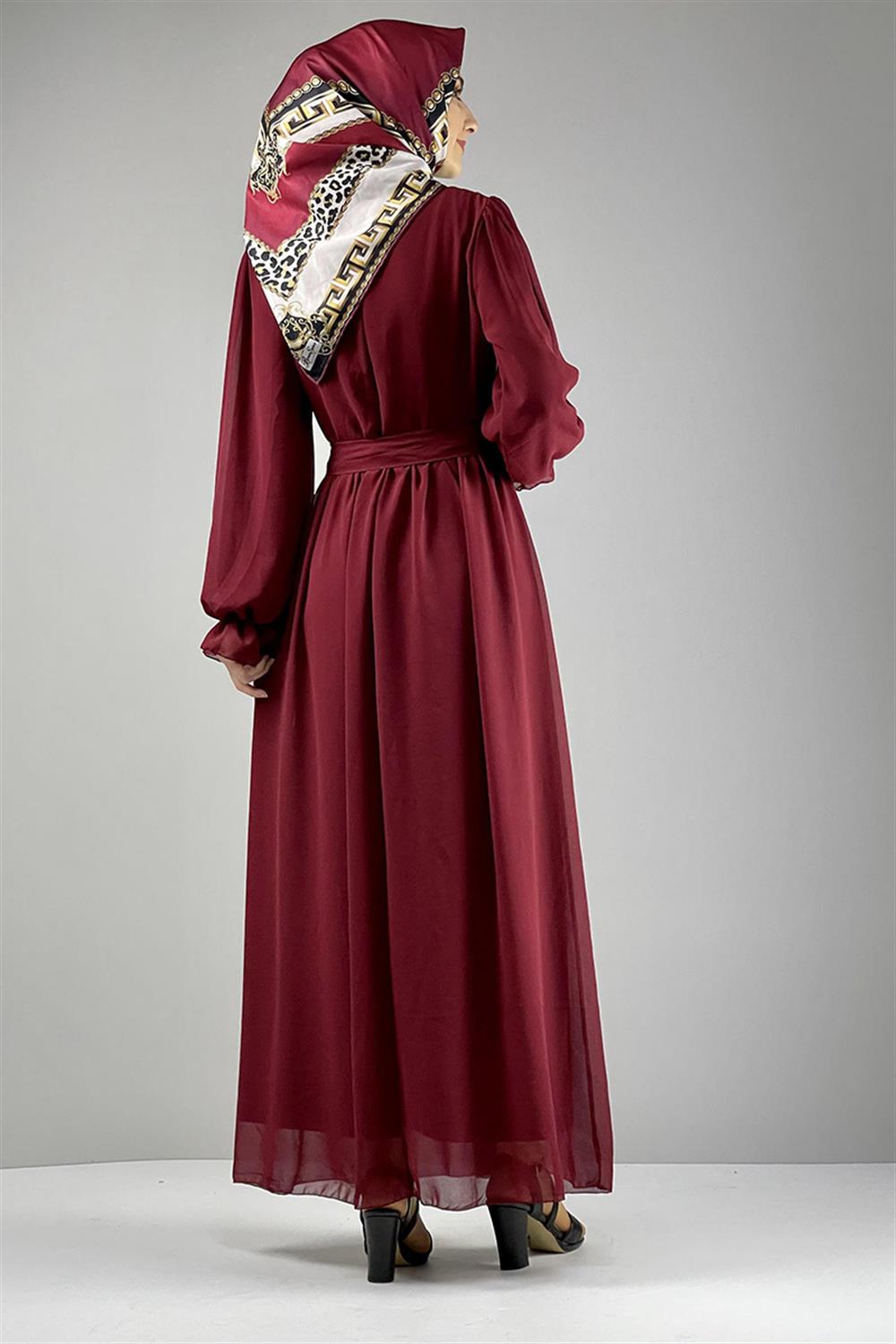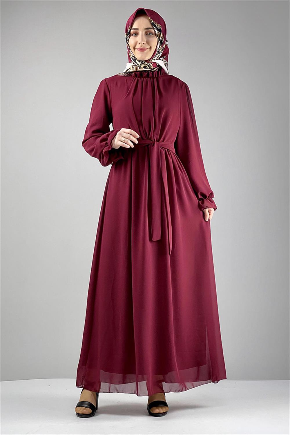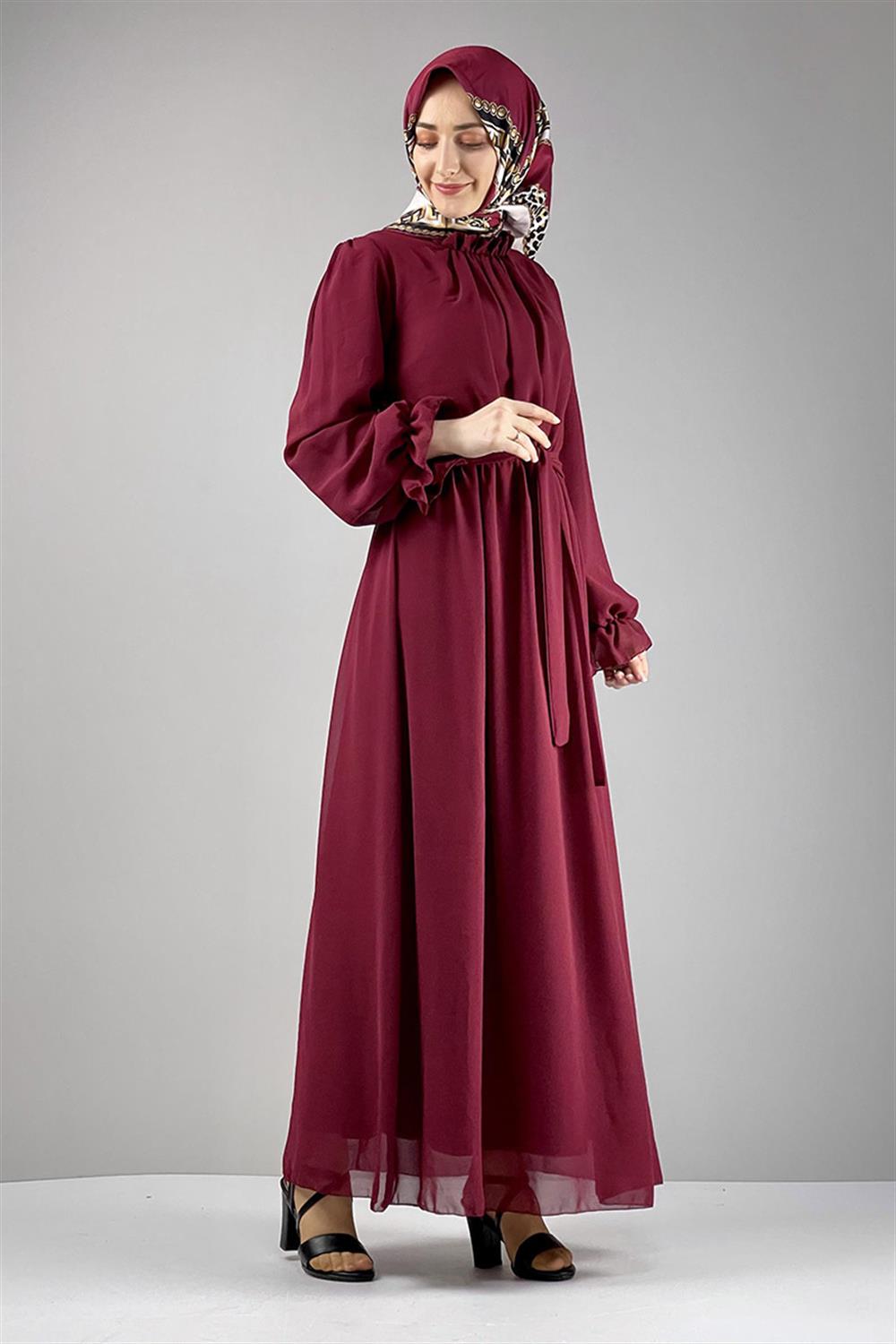 Şifon Tesettür Elbise Bordo