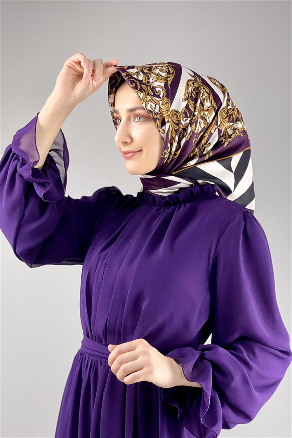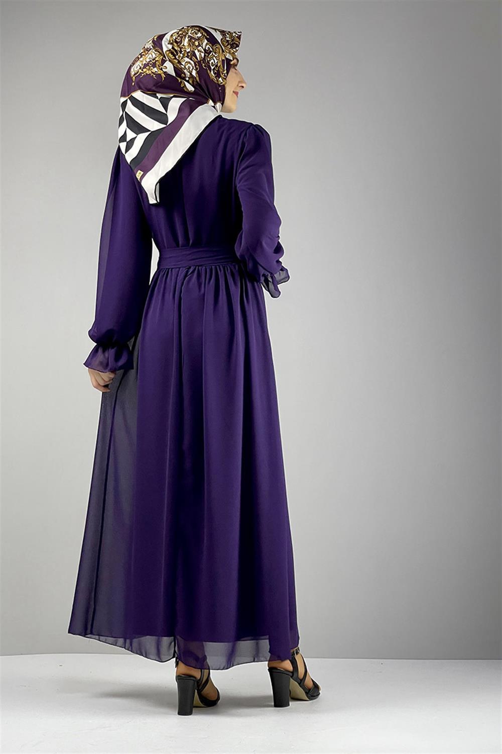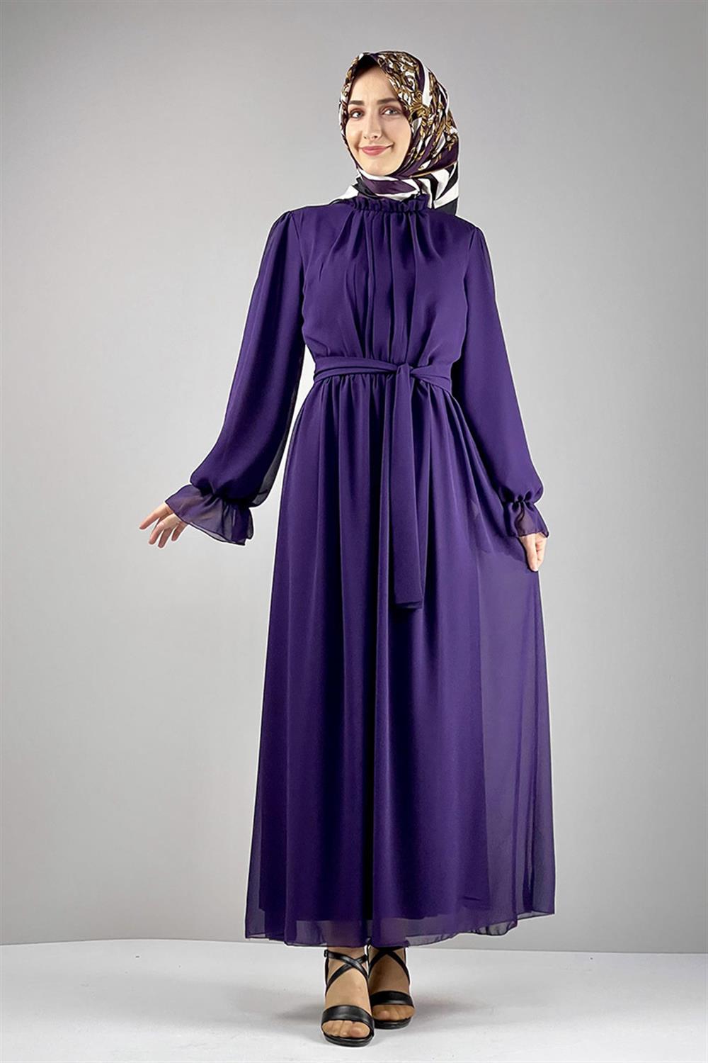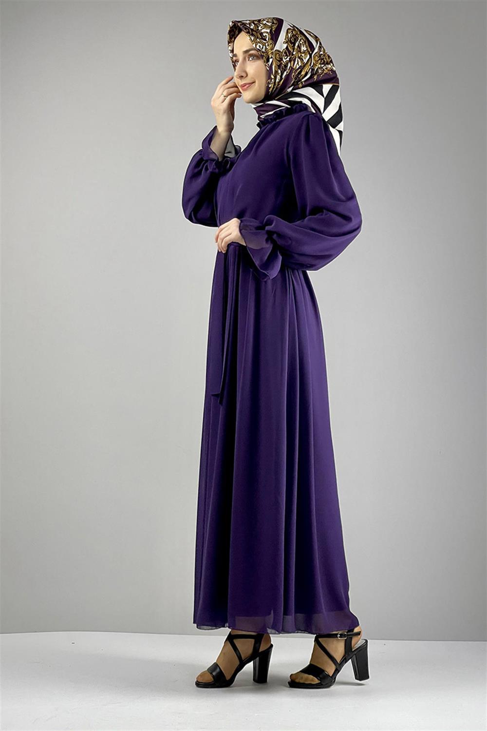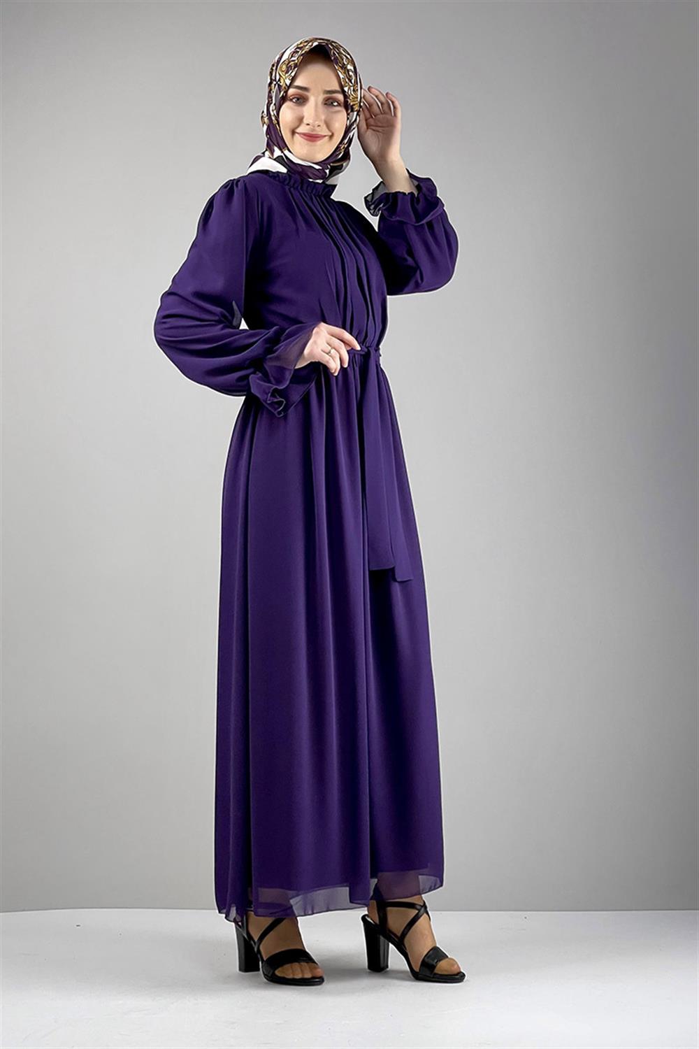 Şifon Tesettür Elbise Mor