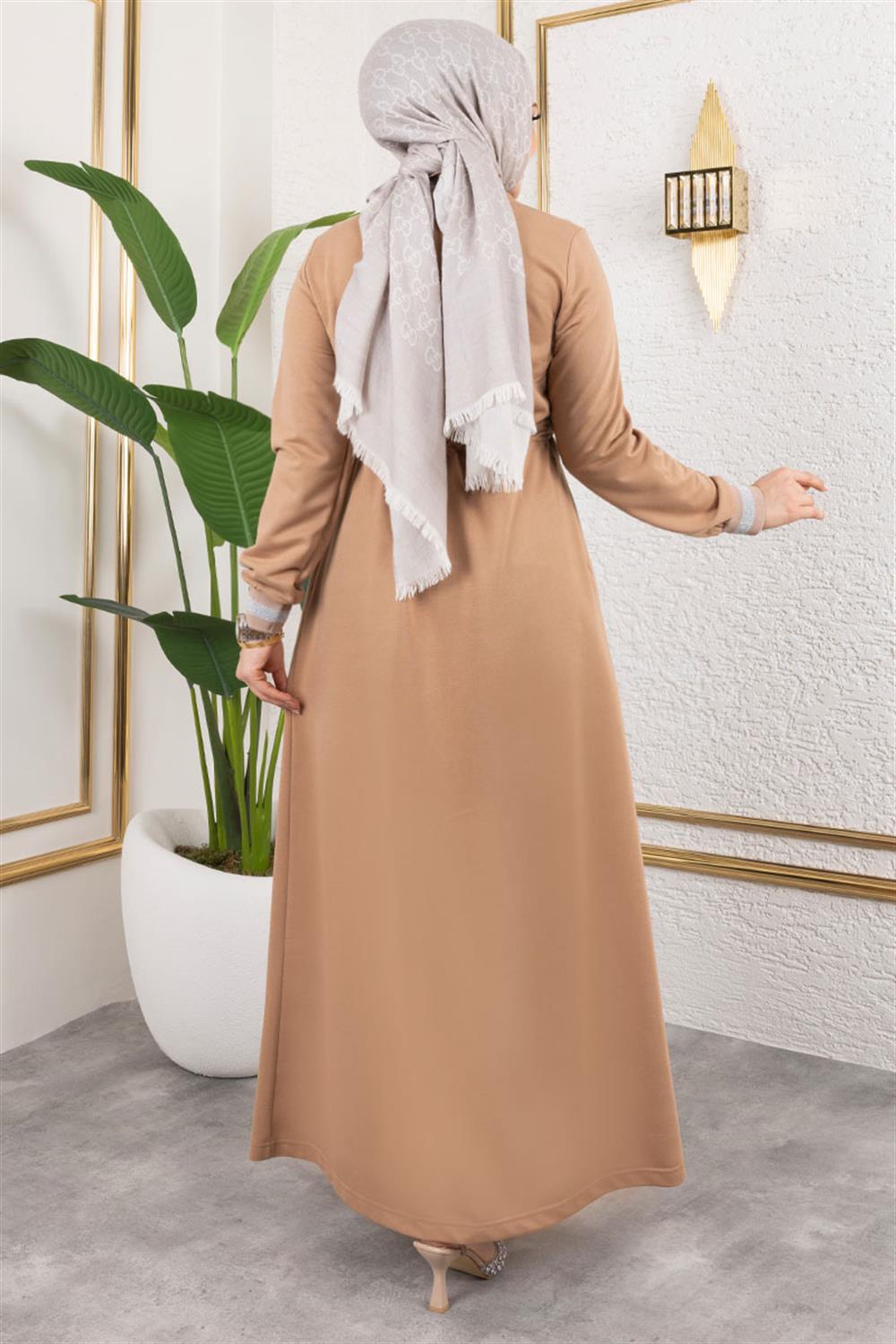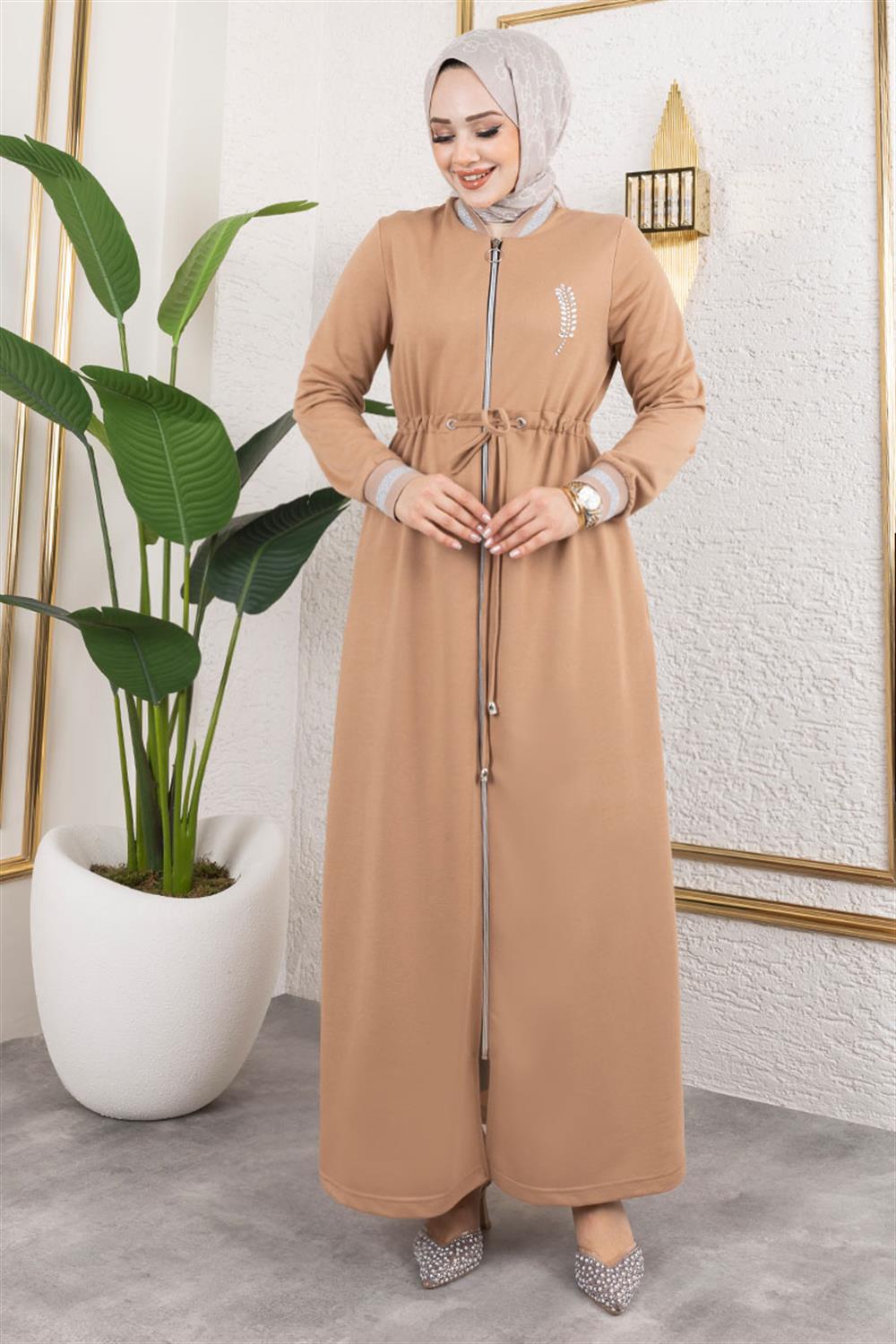 Taşlı Ribana Detaylı Ferace LATTE