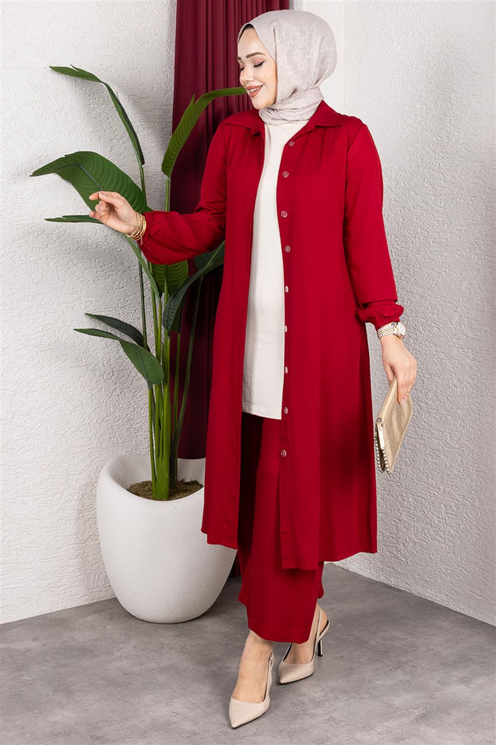 Ürün Özelliği : Yeni sezon tesettür moda ürünüdür. Ürün Gömlek yakadır. Ürün Gizli düğmelidir. Astarsızdır. Pantolon beli lastiklidir. Manşet lastiklidir.Konsept fotoğraf çekimlerinden dolayı üründe ton farklılığı olabilir.