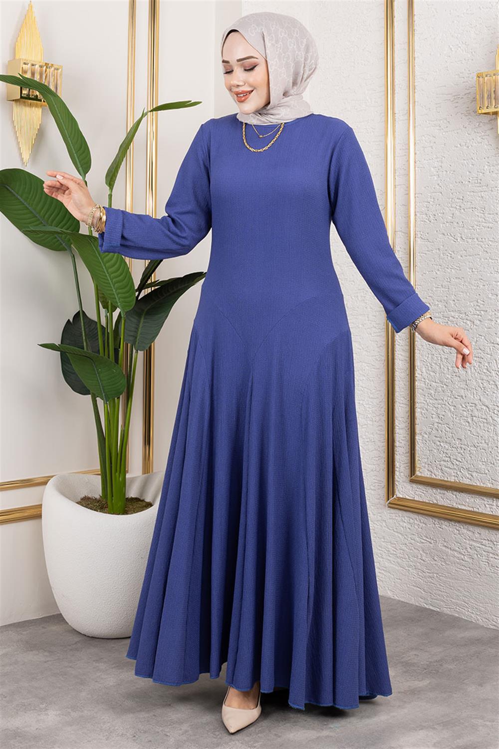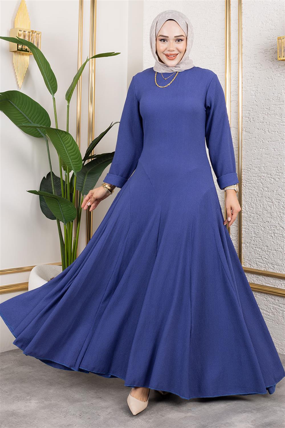 Volan Detaylı Bürümcük Elbise MAVİ