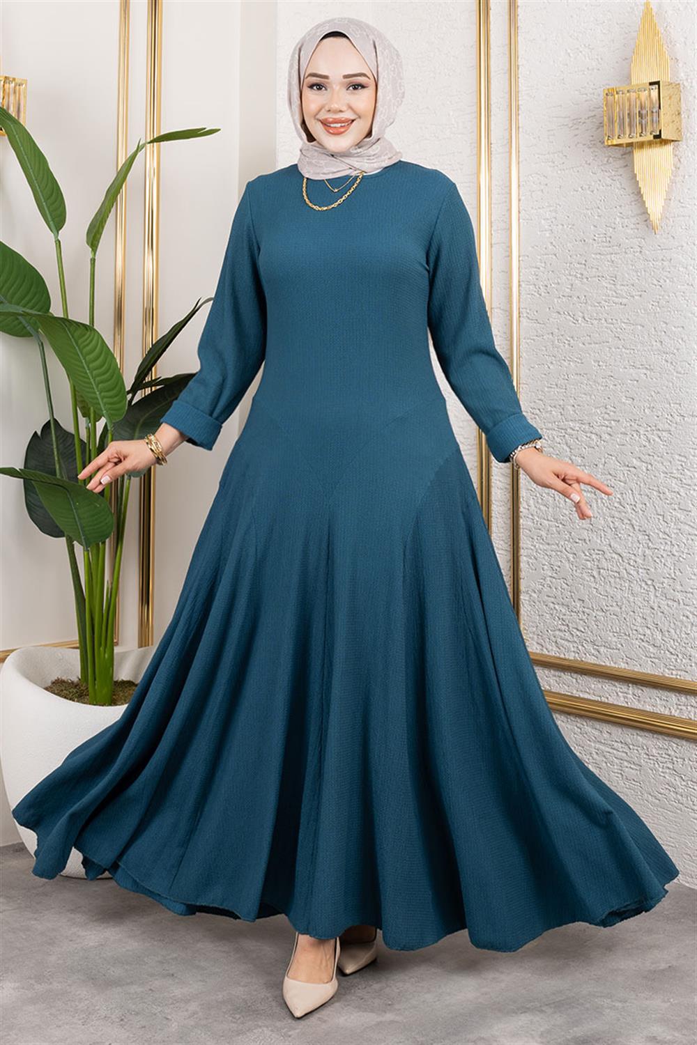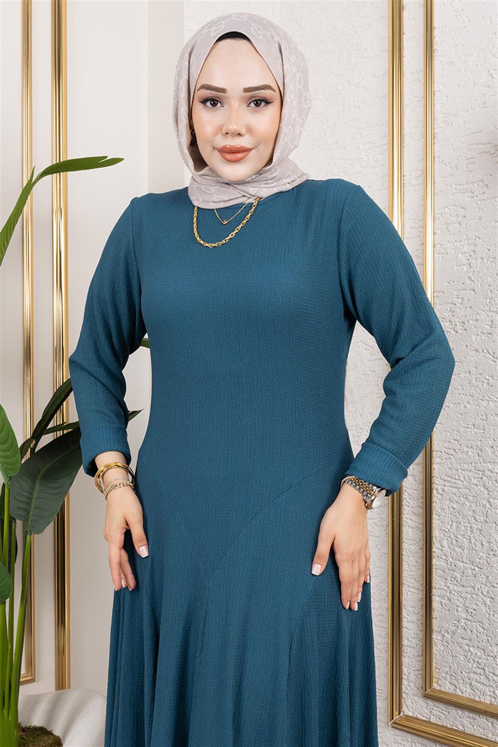 Volan Detaylı Bürümcük Elbise PETROL