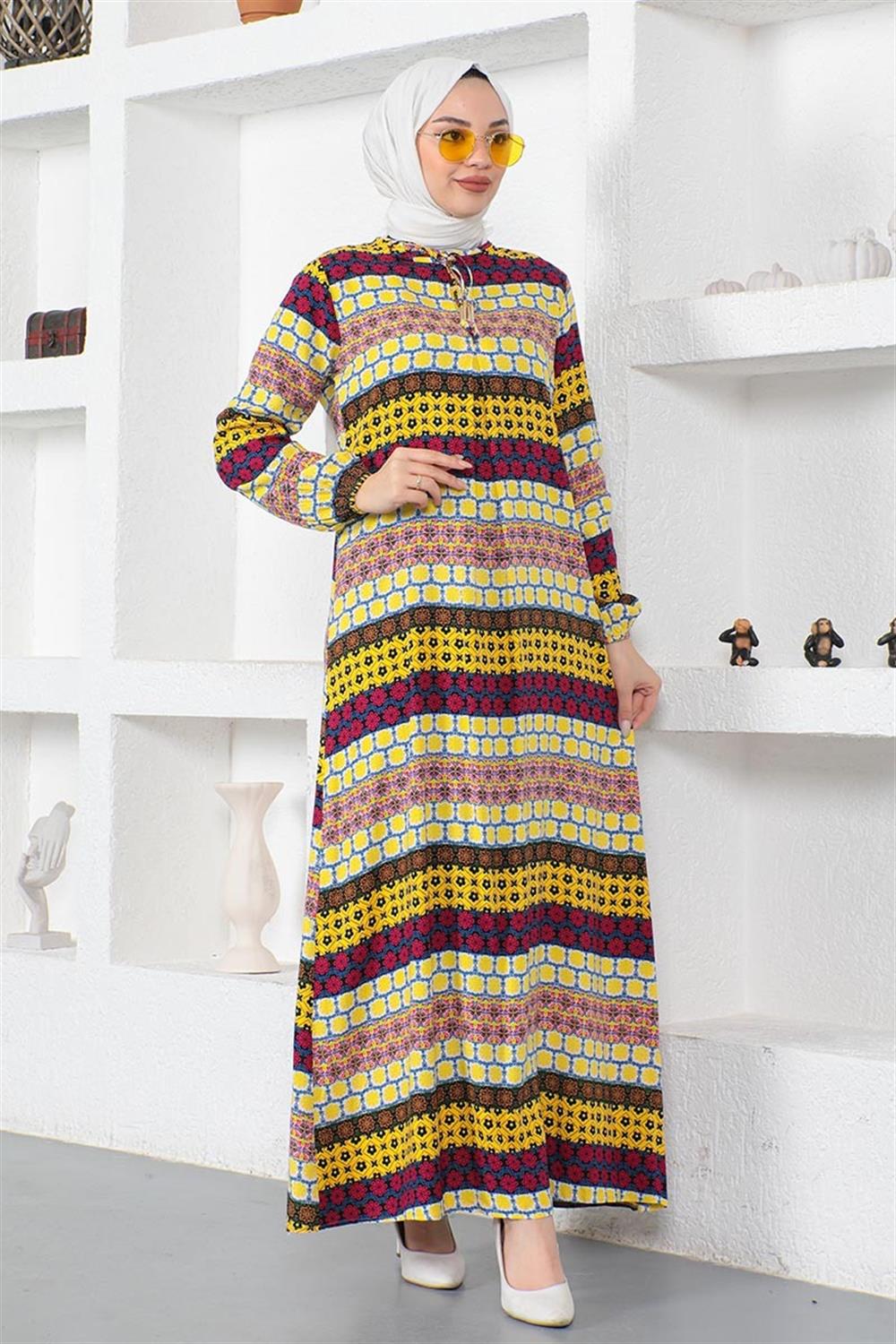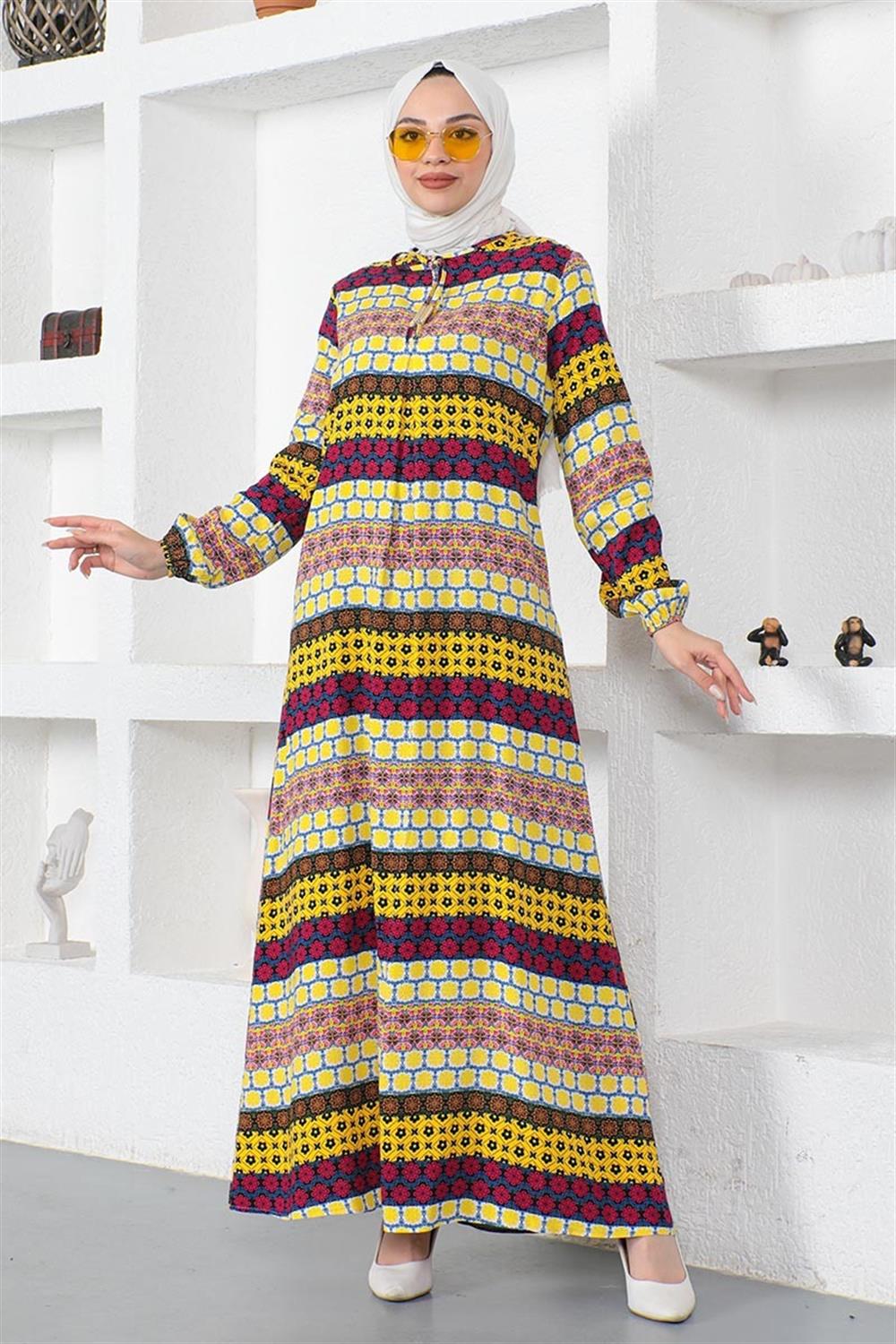 Yakası Bağcıklı Viskon Elbise