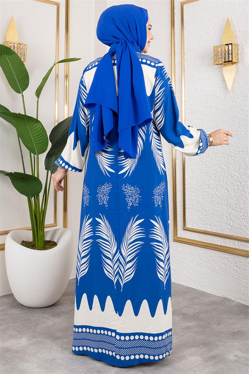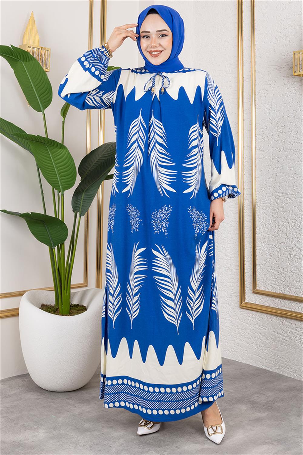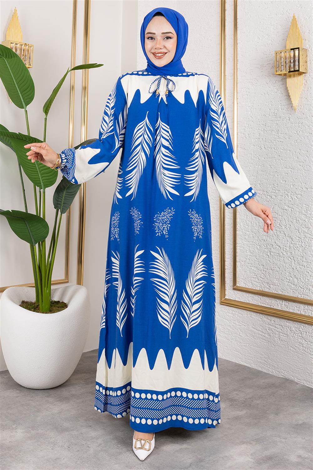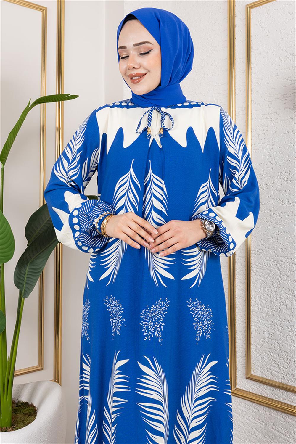 Yakası Bağlamalı Viskon Elbise İNDİGO