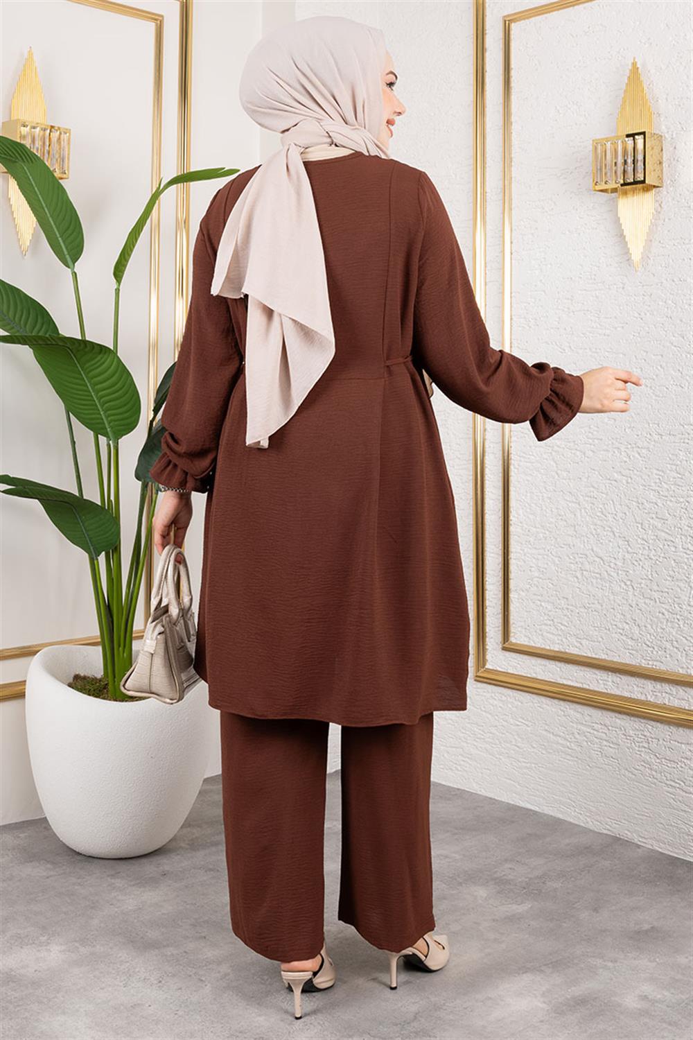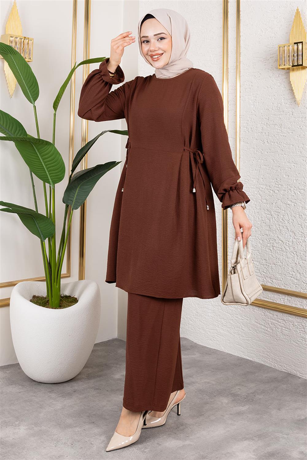 Yanları Bağcıklı Aerobin Takım KAHVERENGİ