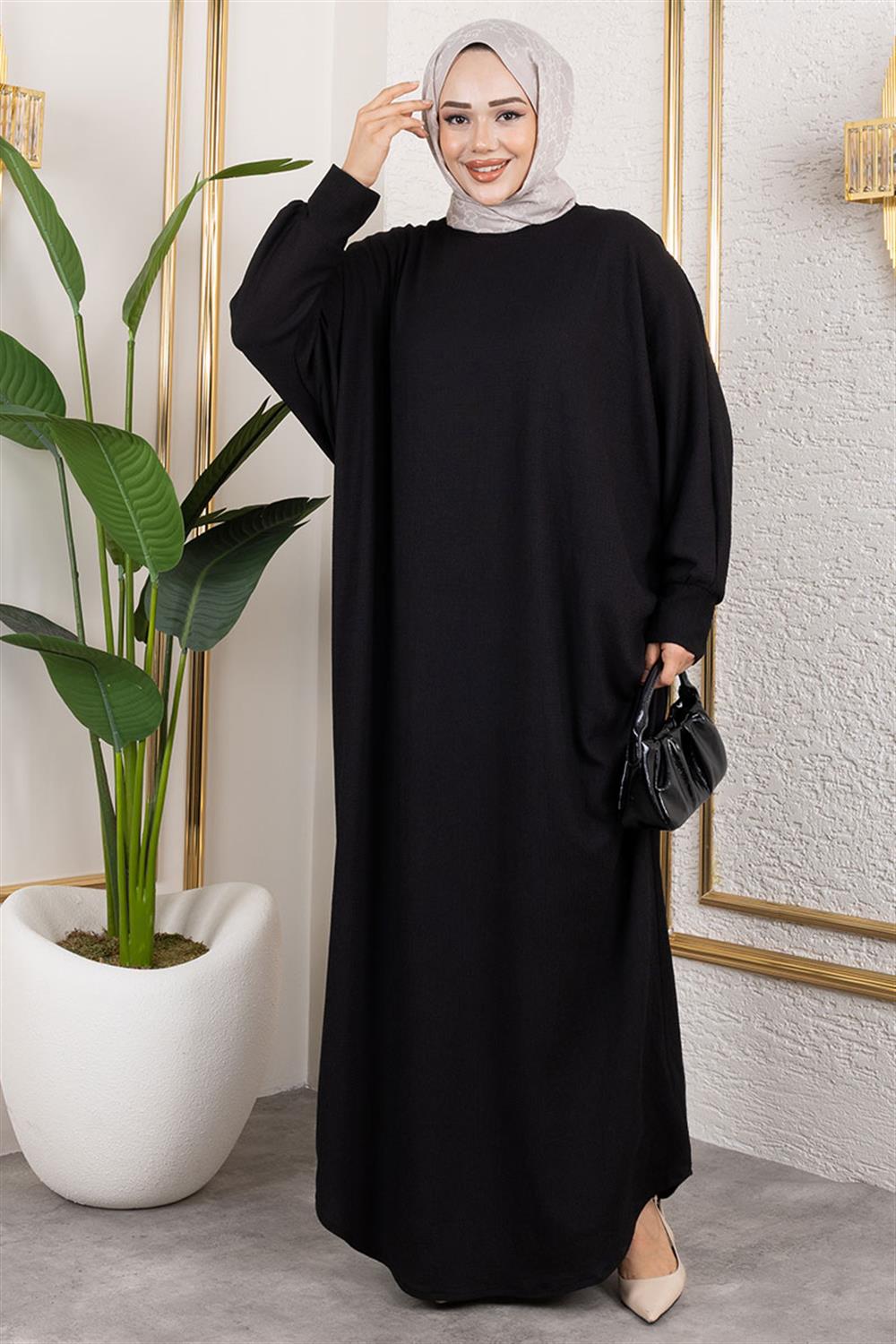 Yarasa Kollu Bürümcük Elbise SİYAH