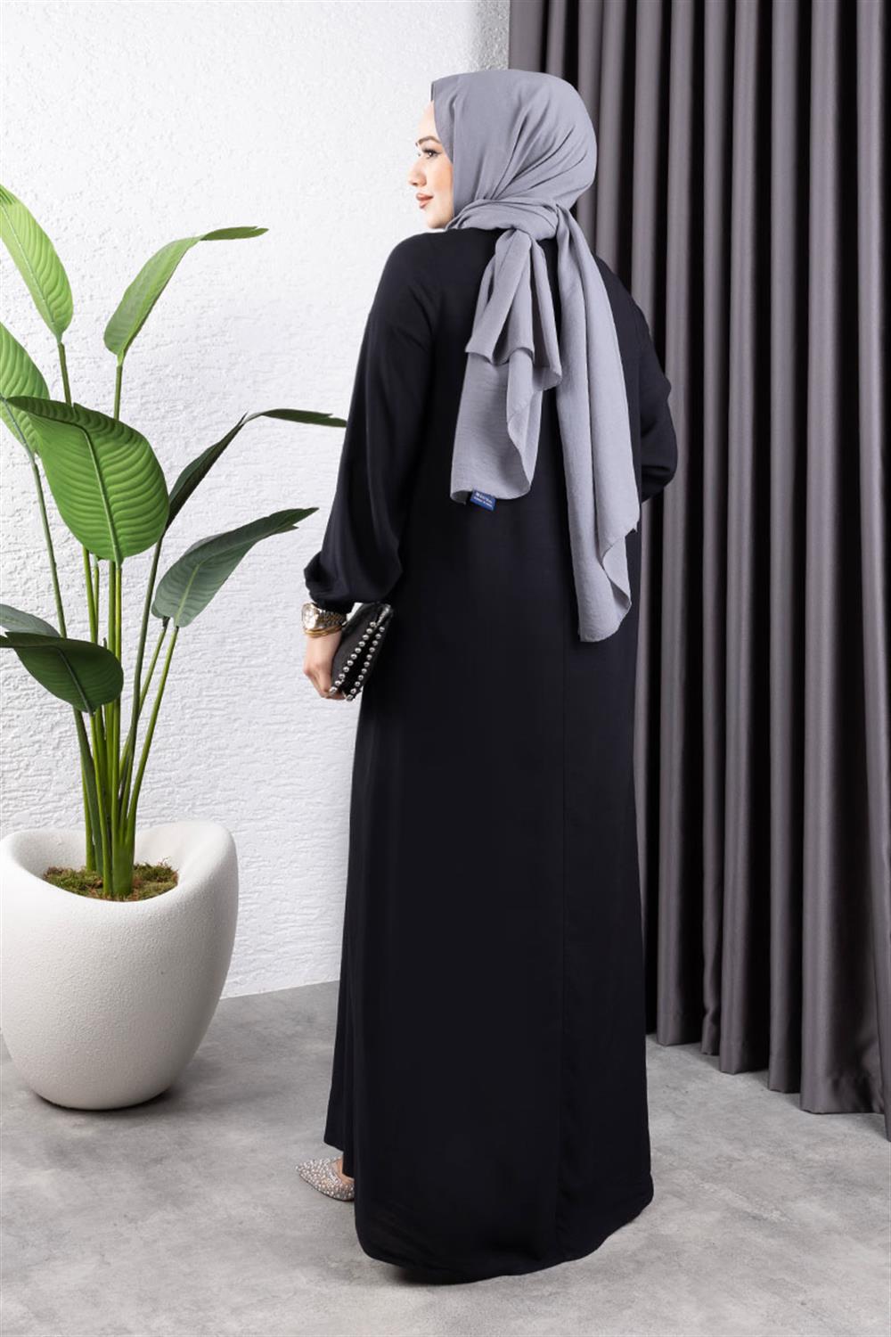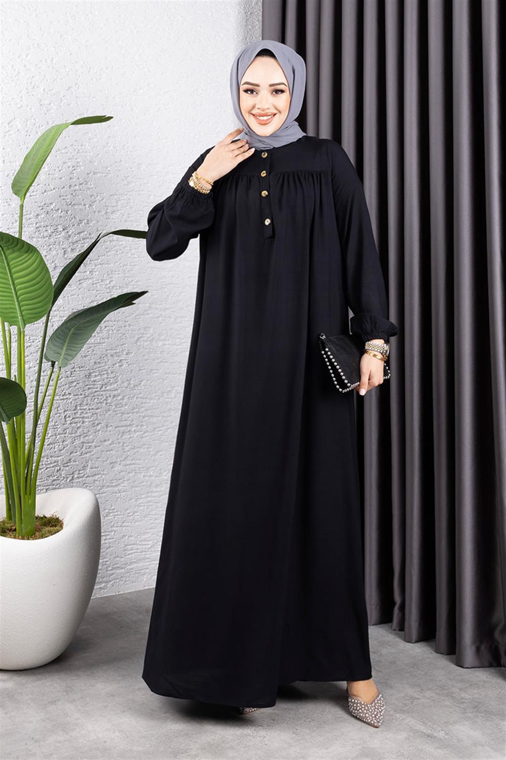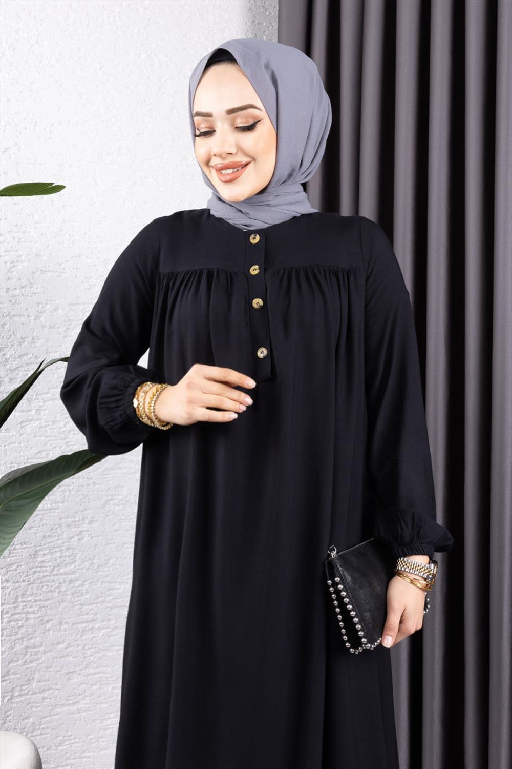 Yarım Düğmeli Viskon Elbise LACİVERT