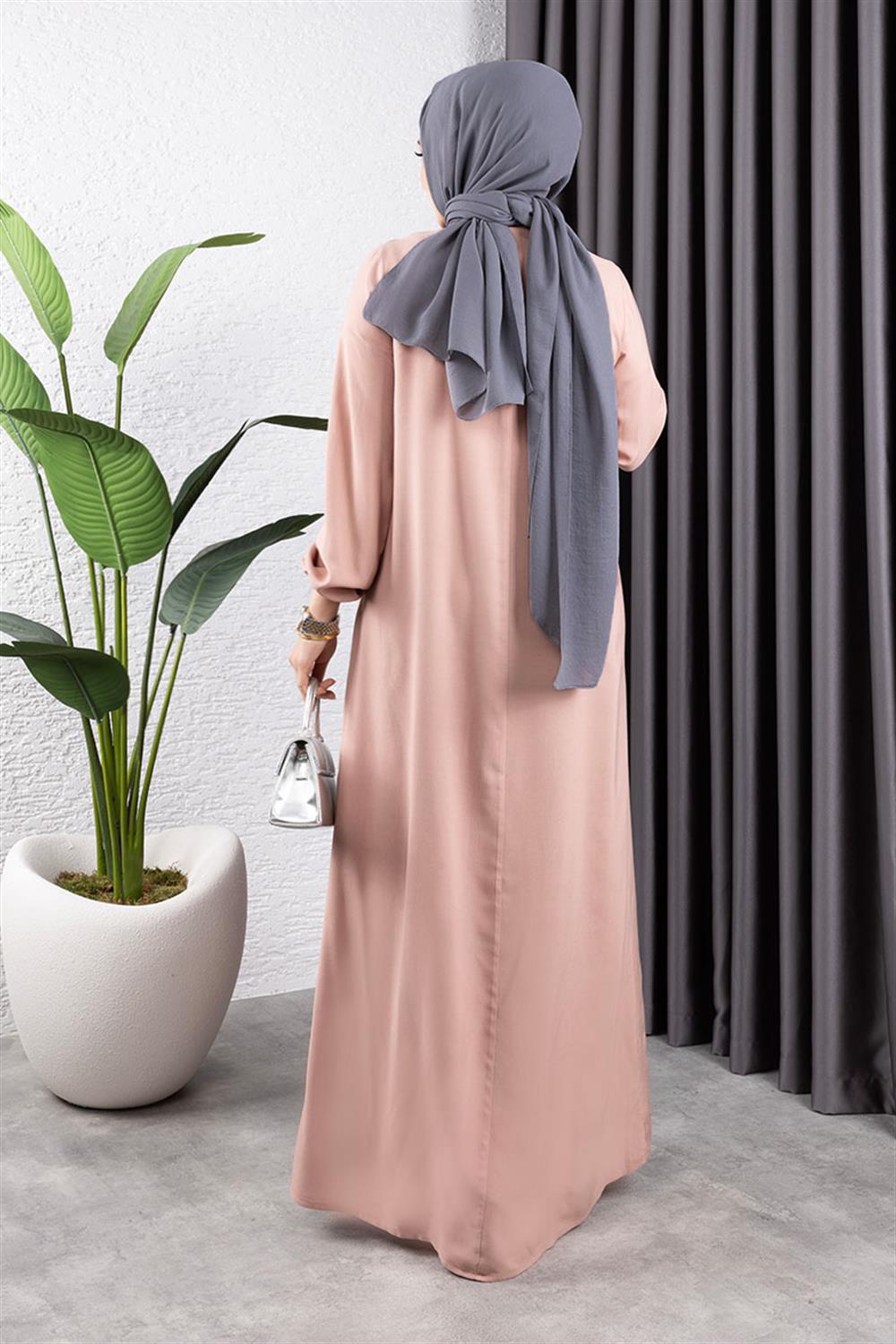 Yarım Düğmeli Viskon Elbise PUDRA