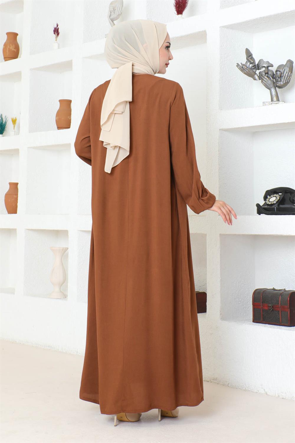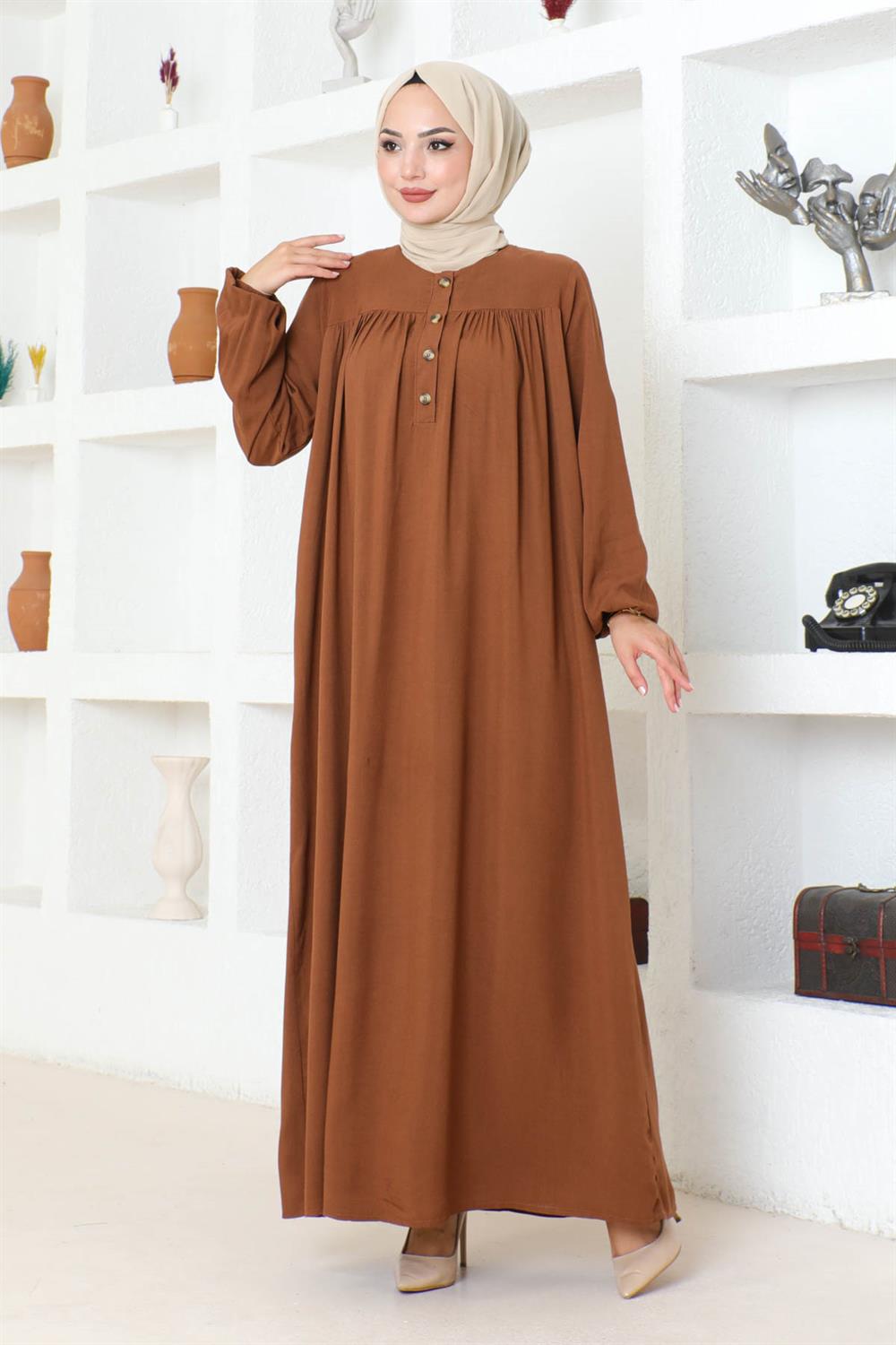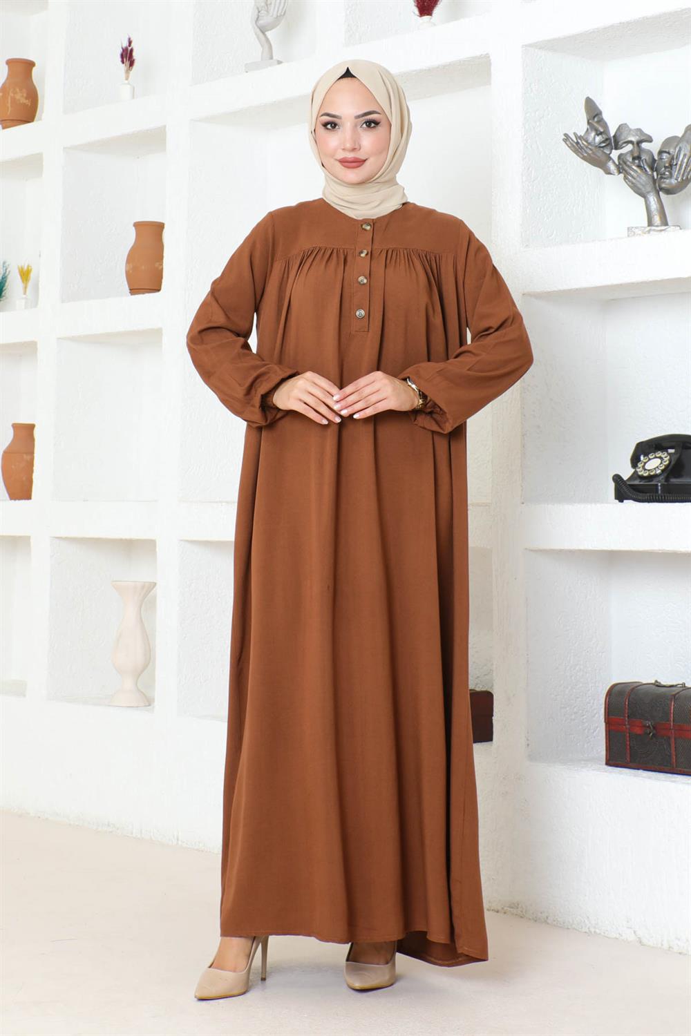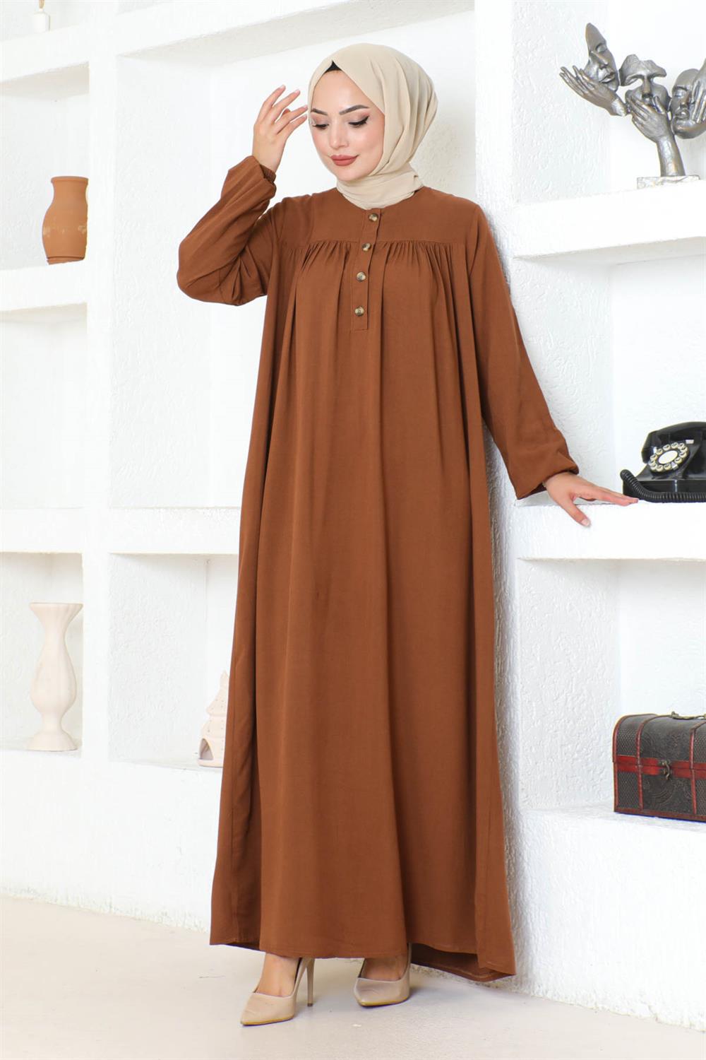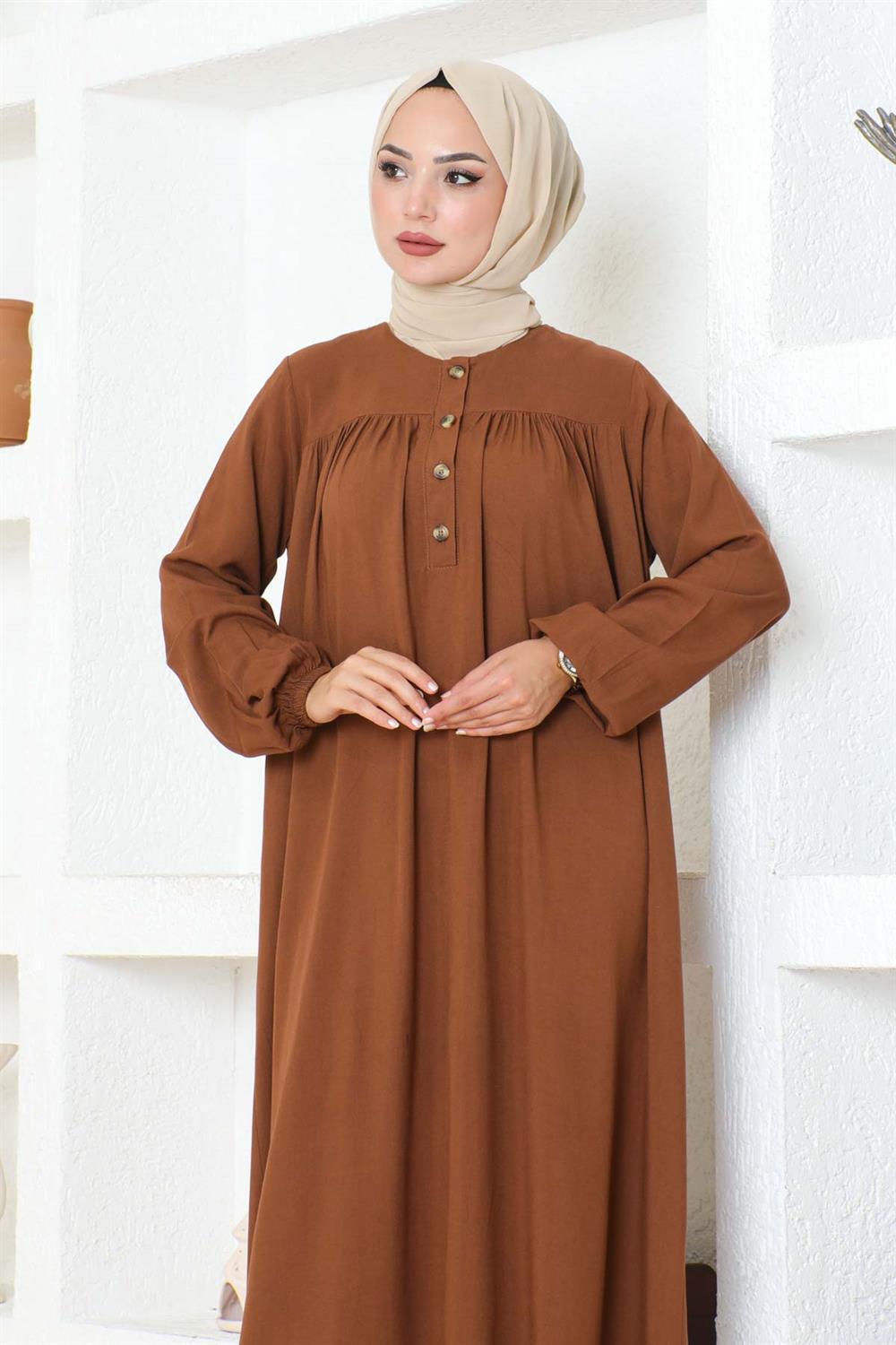 Yarım Düğmeli Viskon Elbise TABA