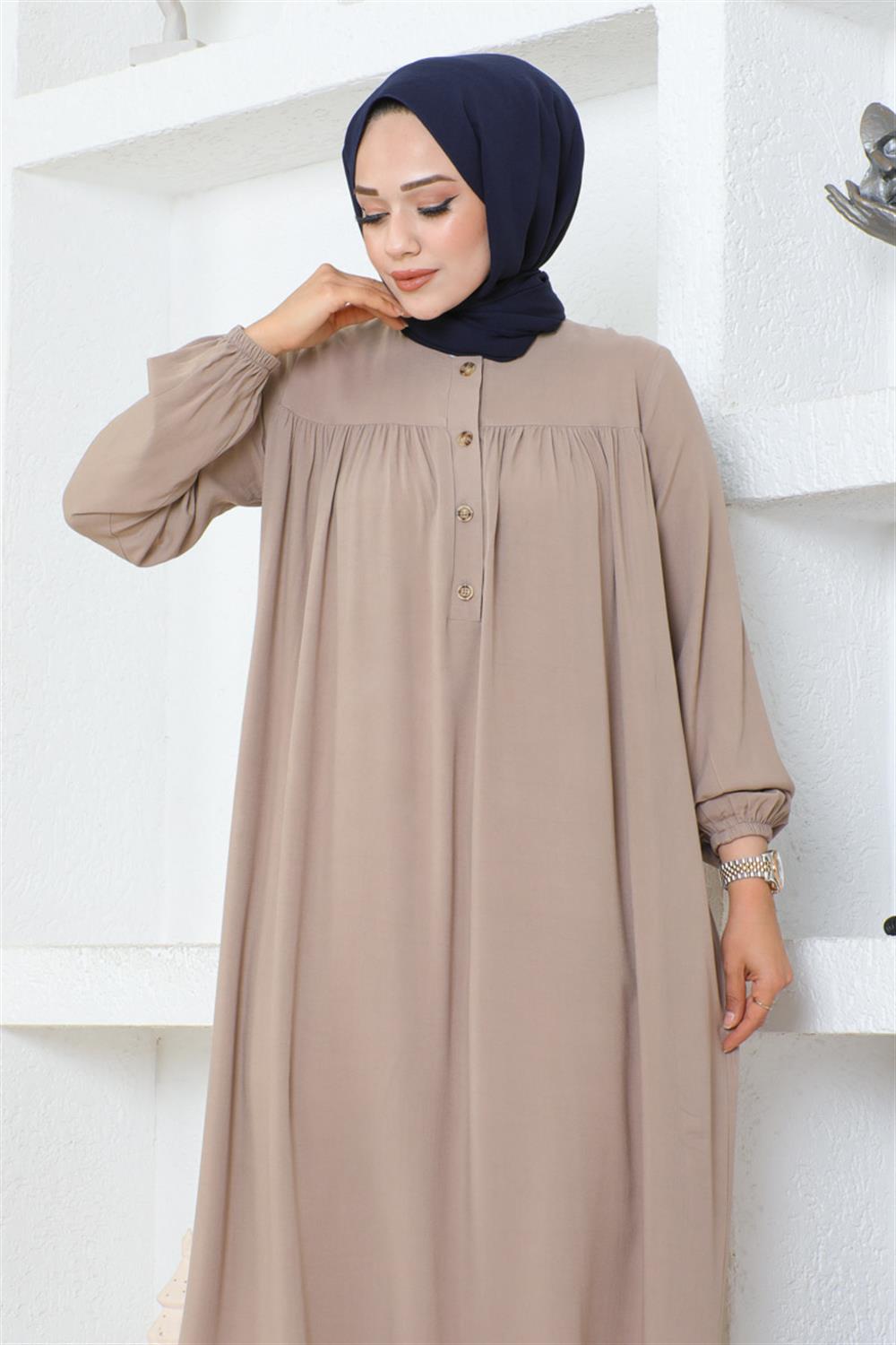 Yarım Düğmeli Viskon Elbise TAŞ