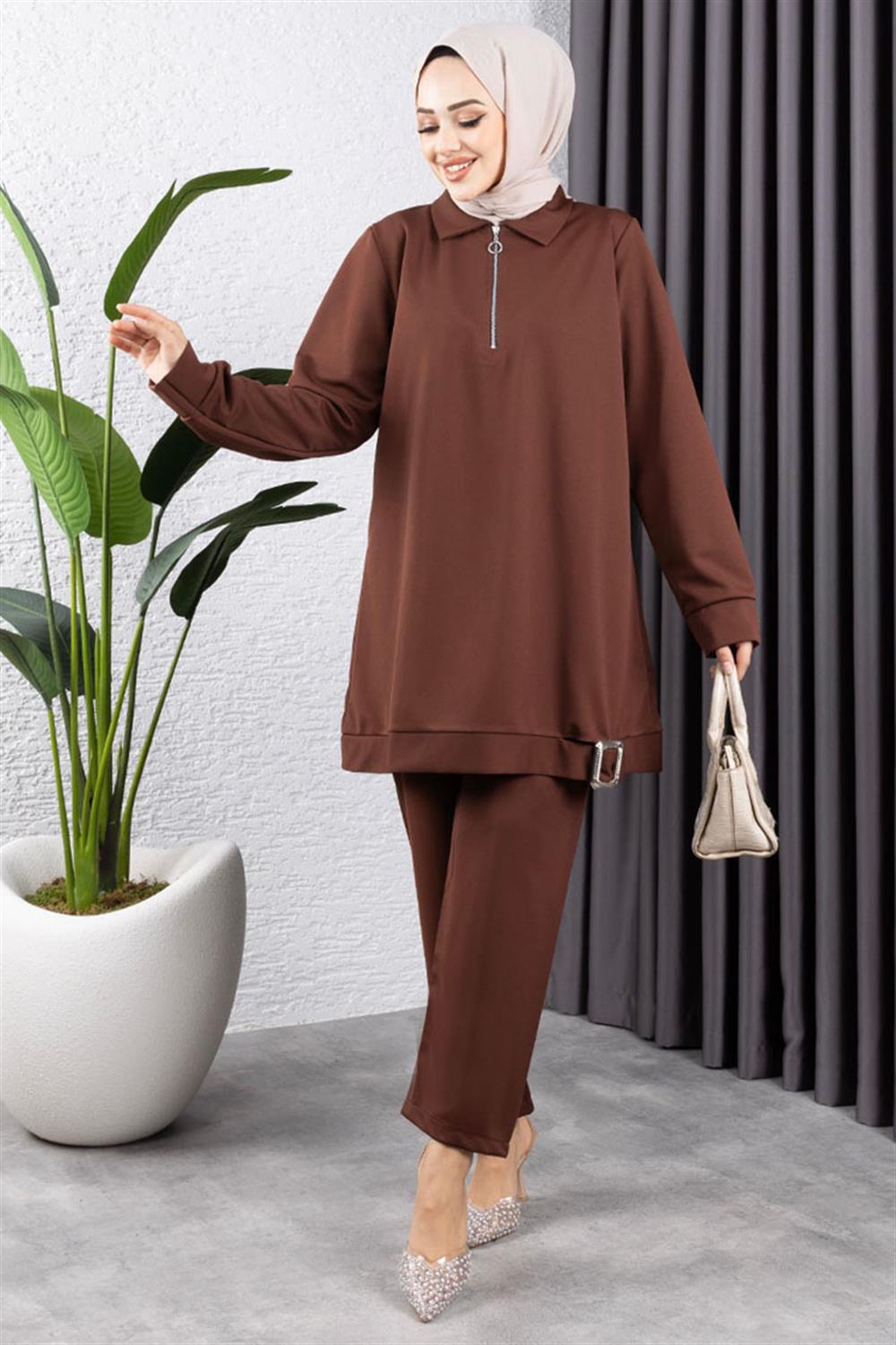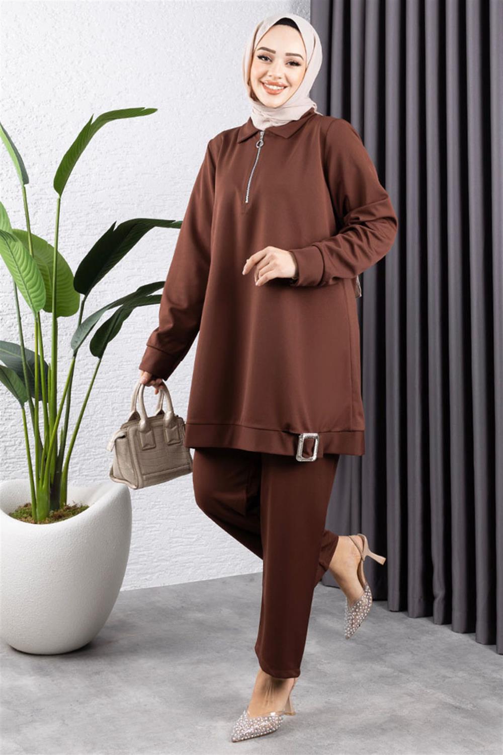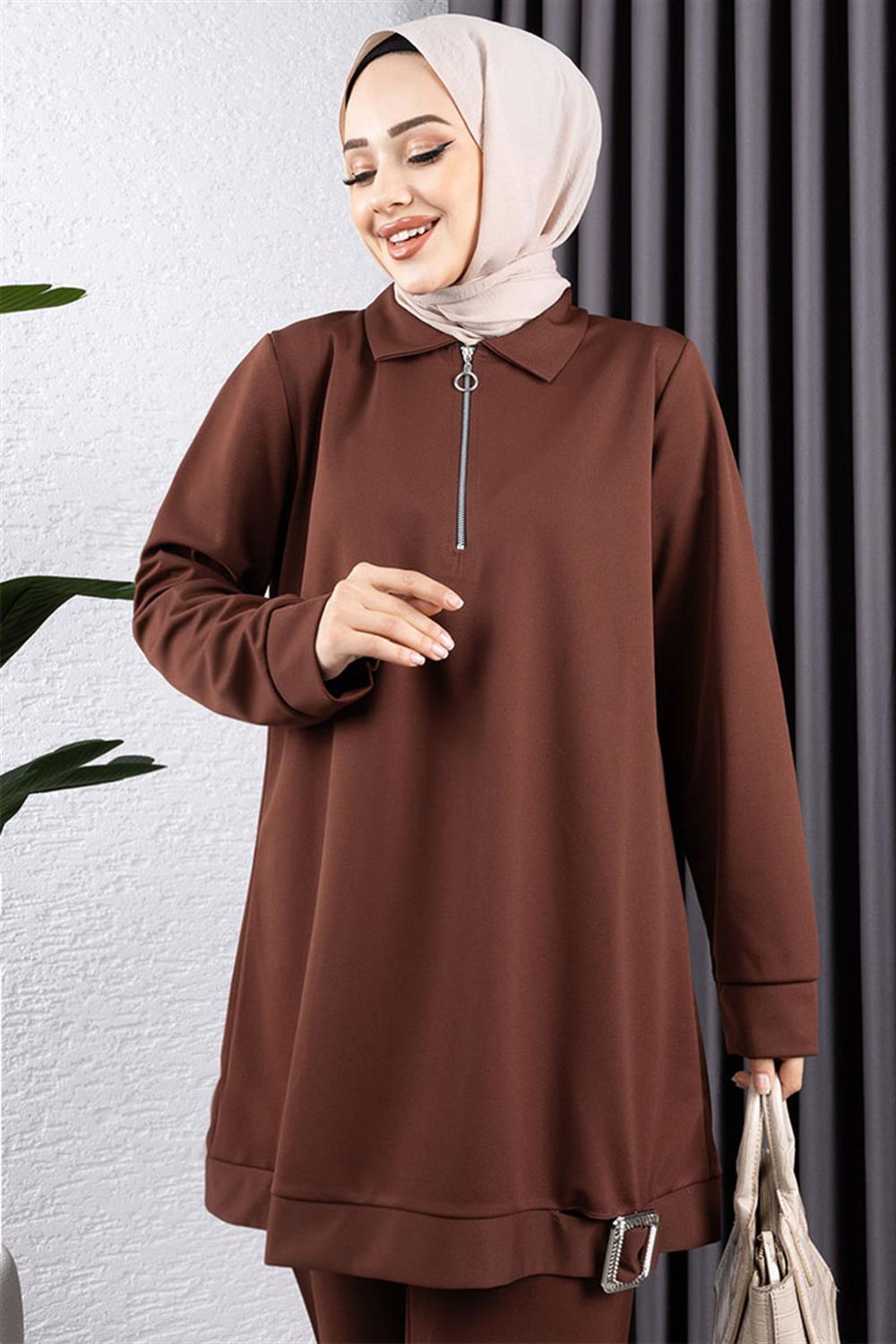 Yarım Fermuarlı Spor Takım KAHVERENGİ