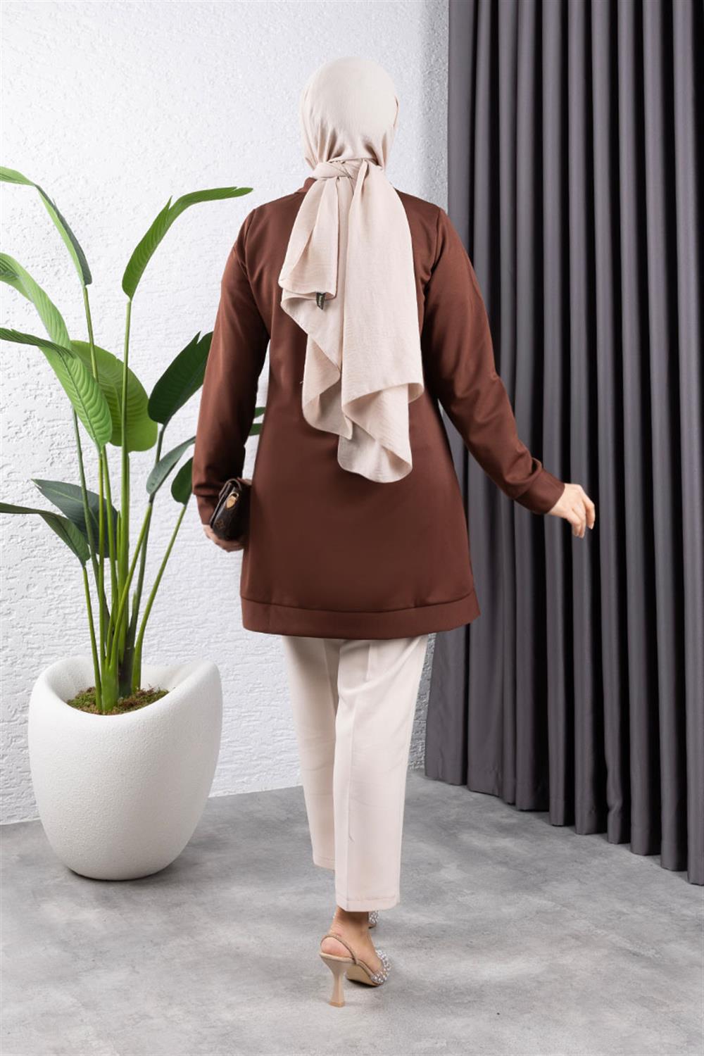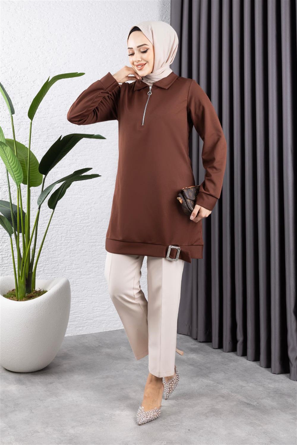 Yarım Fermuarlı Spor Tunik KAHVERENGİ