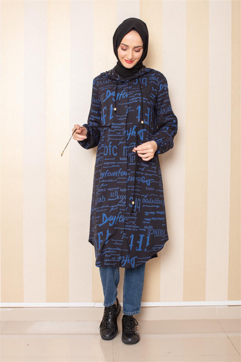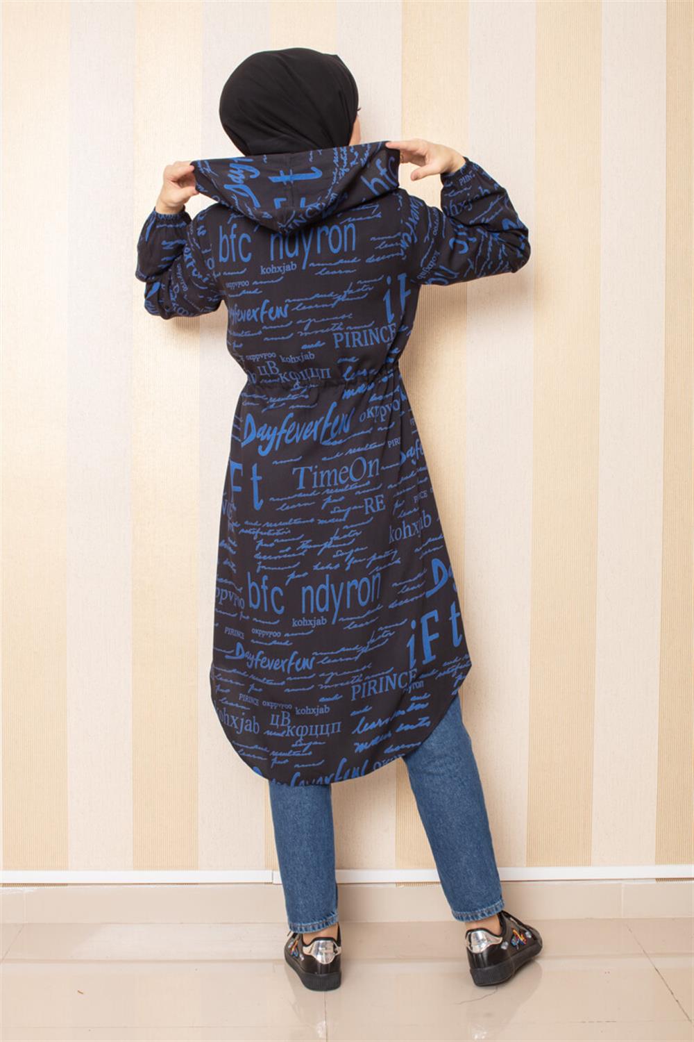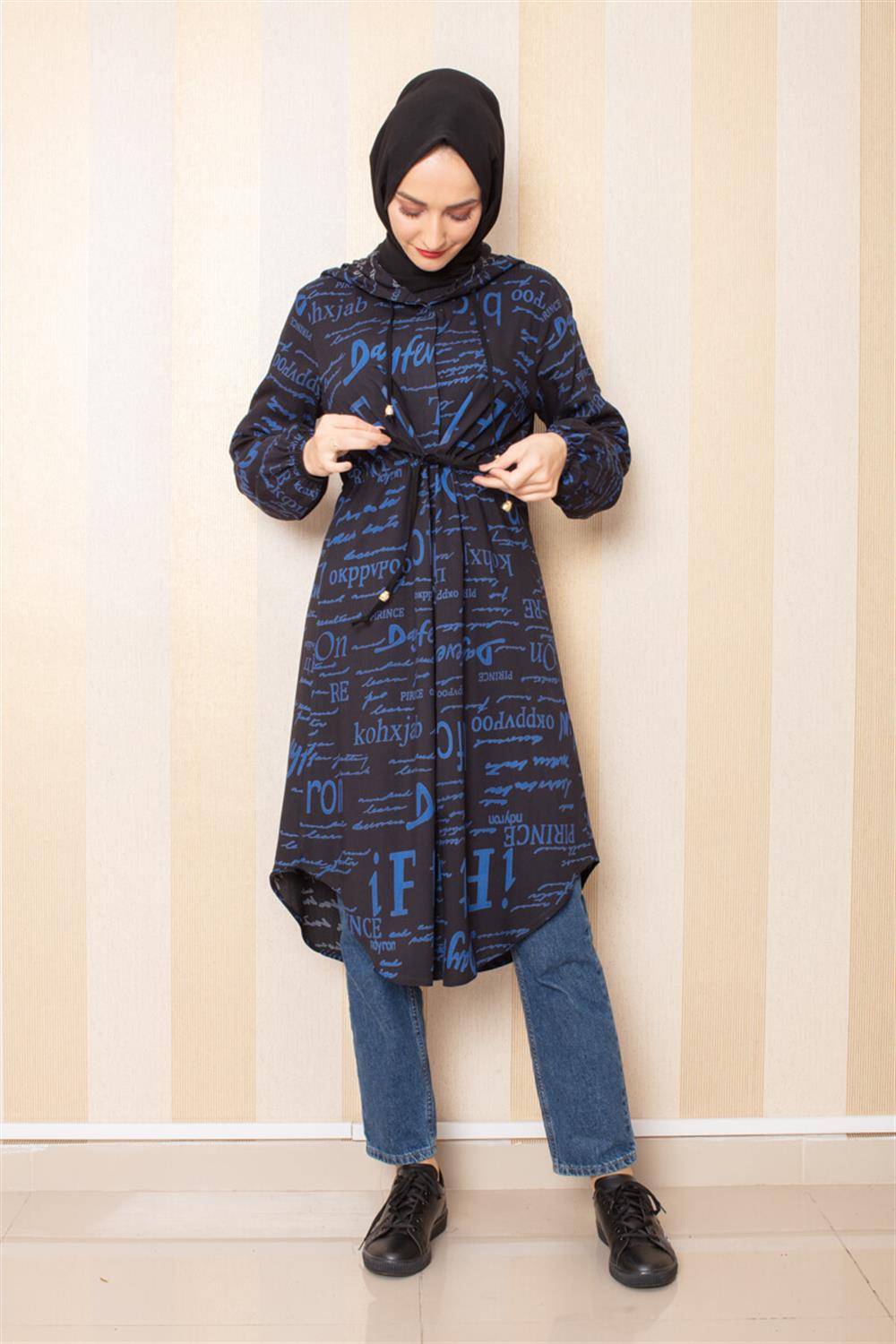 Yazı Baskılı Tesettür Tunik İndigo