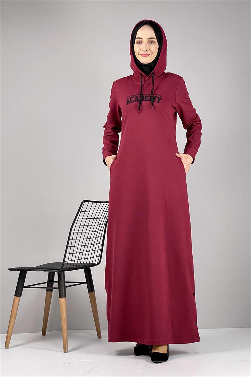 • Yırtmaç Detaylı Spor Elbise Bordo