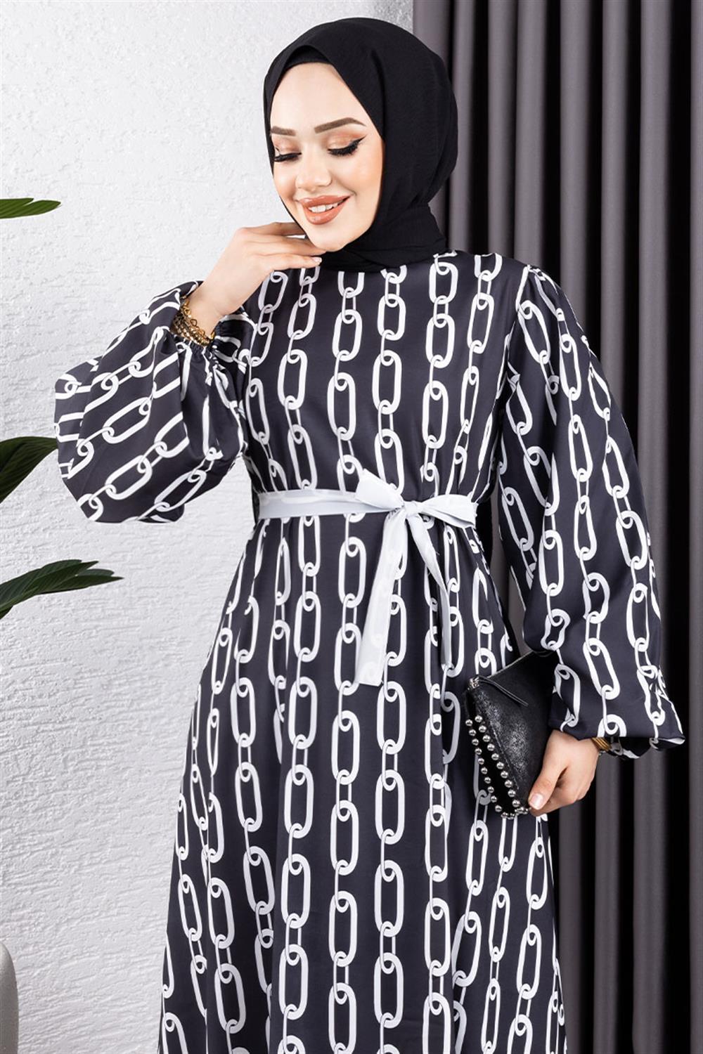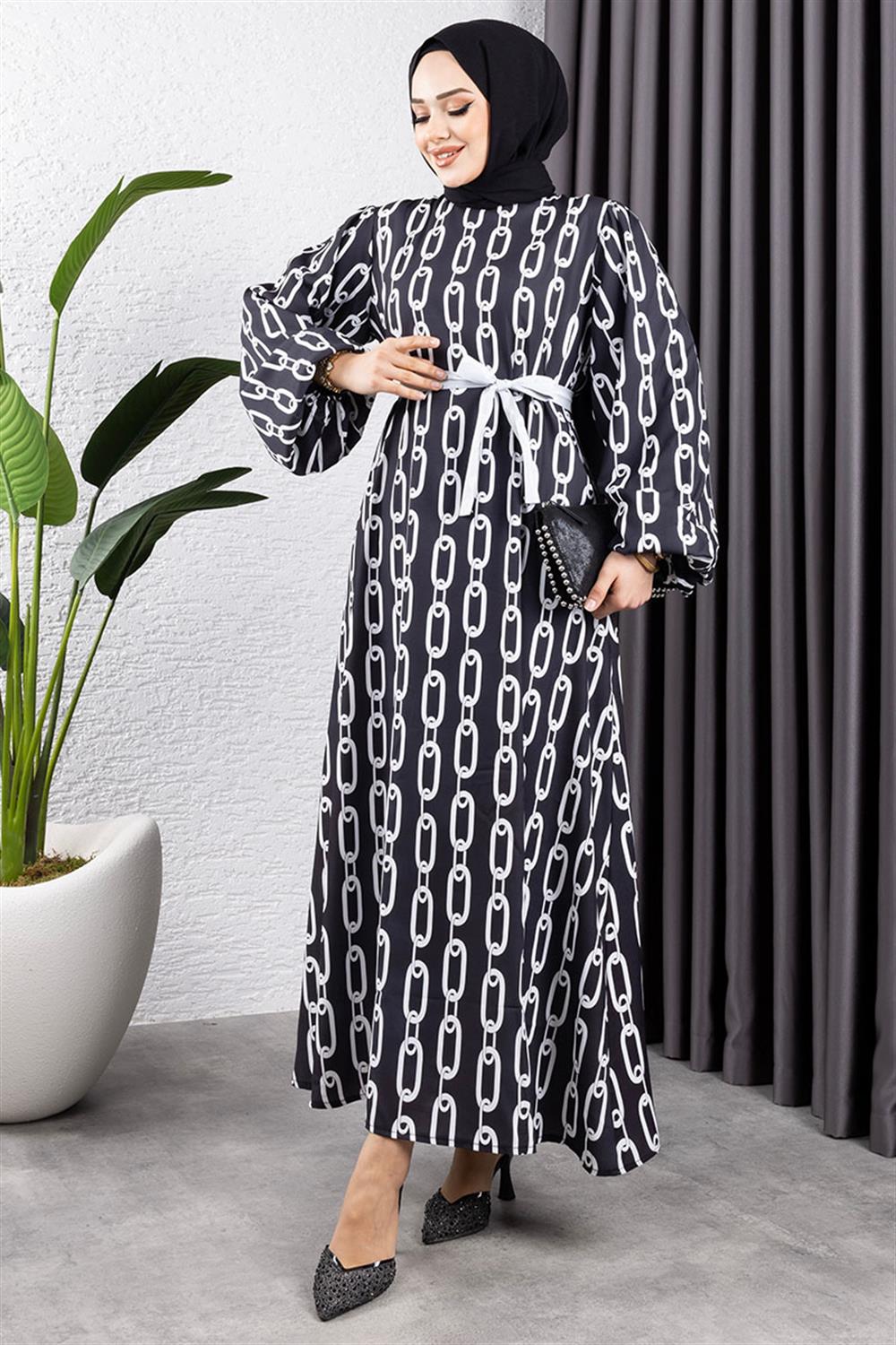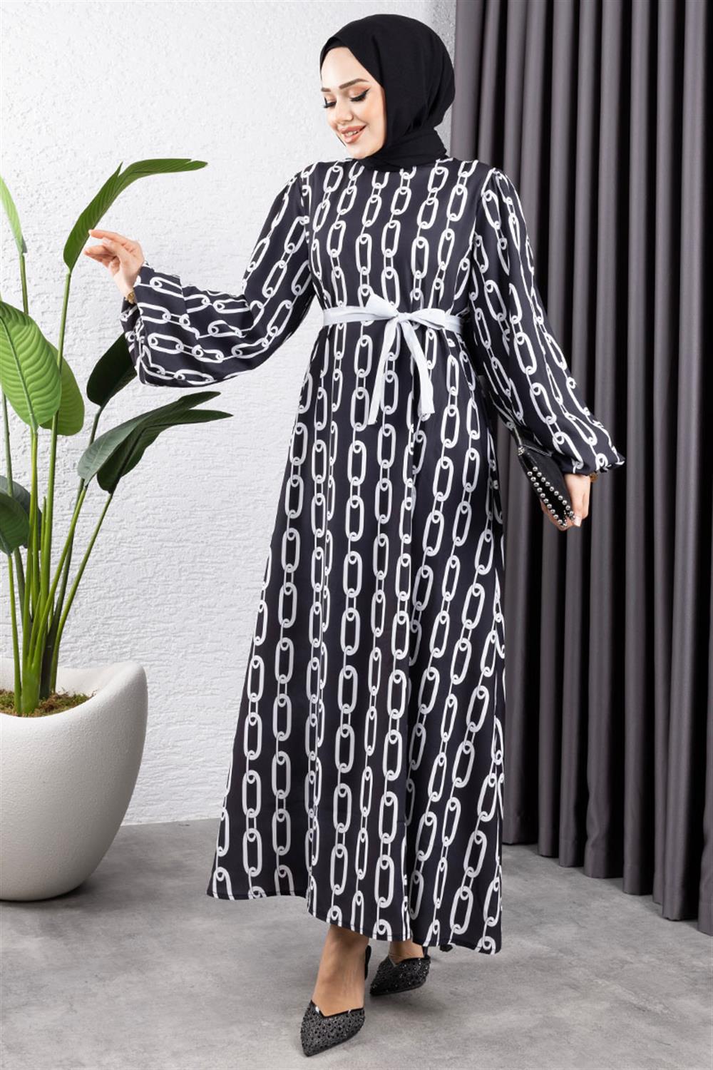 Zincir Desenli Tesettür Elbise