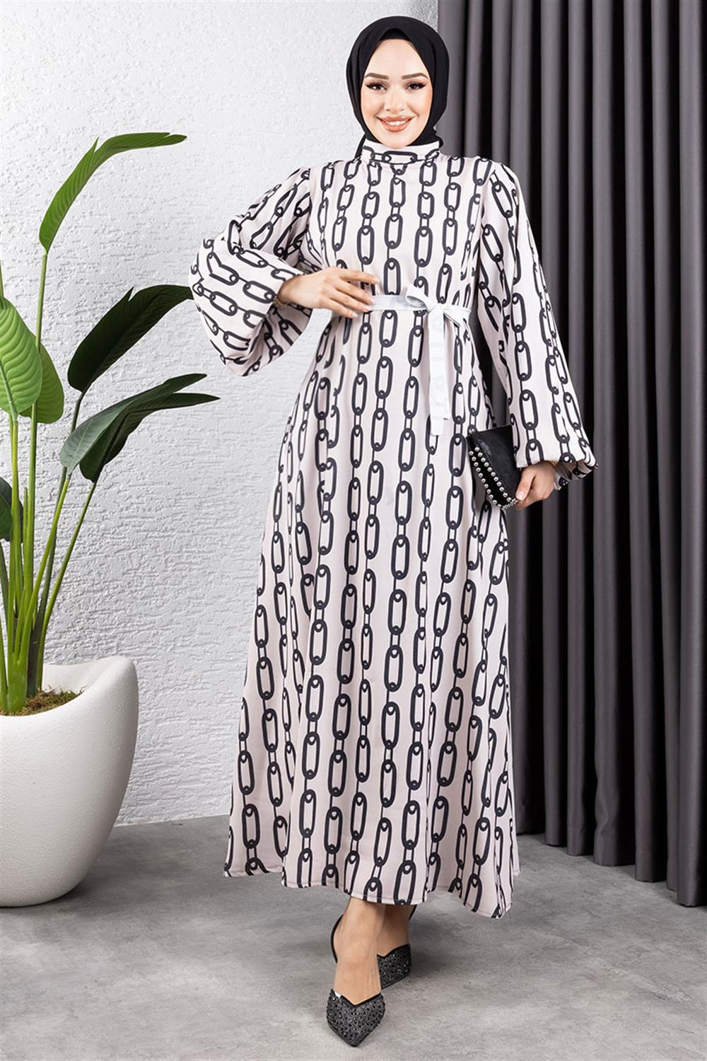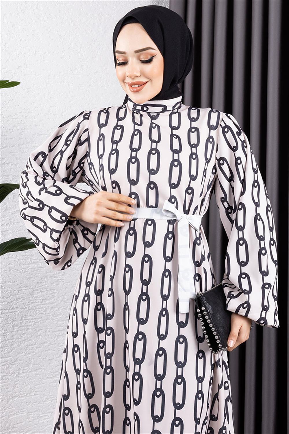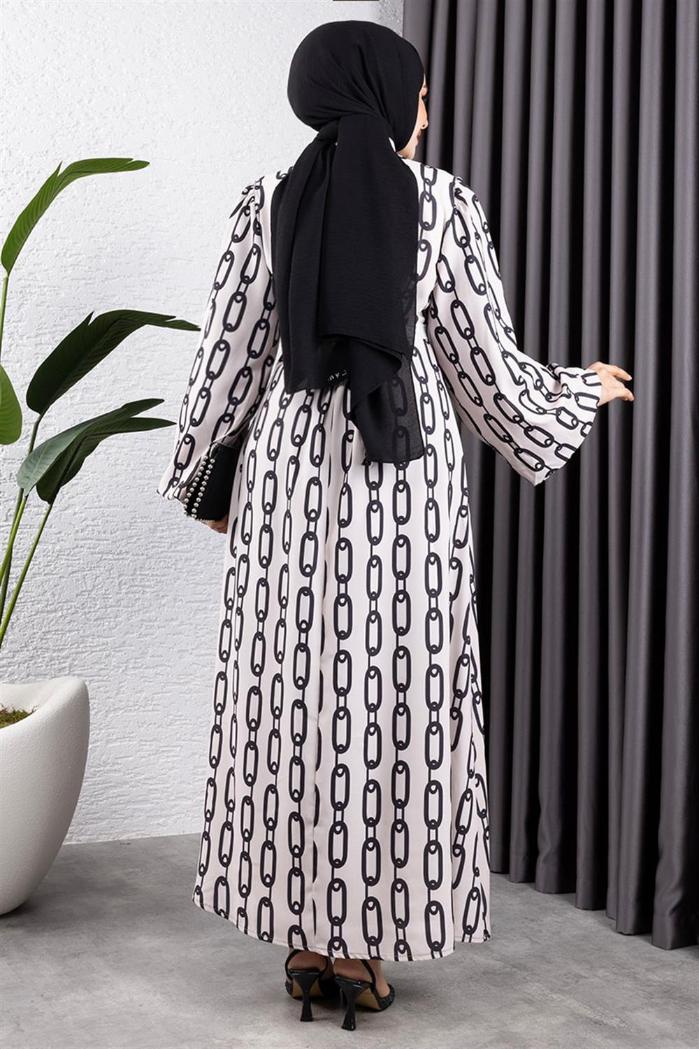 Zincir Desenli Tesettür Elbise